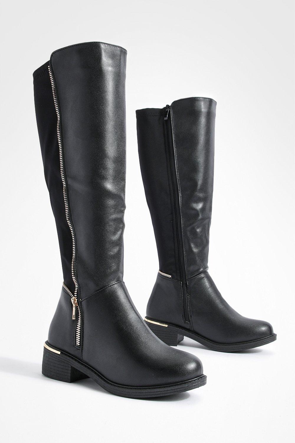 Black flat knee high boots with zipper shop