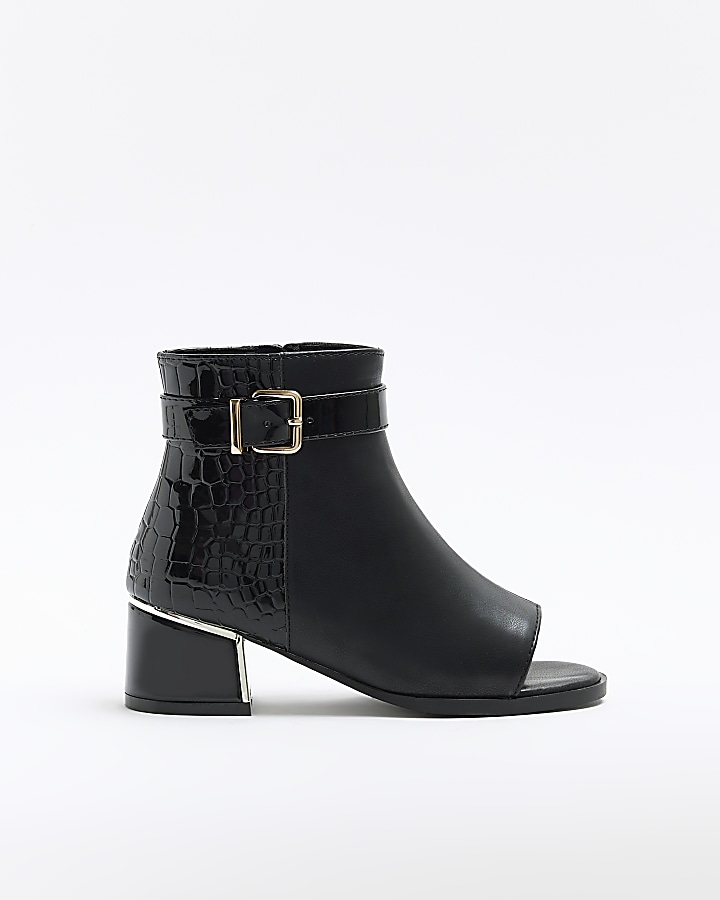 Black open side ankle boots shop