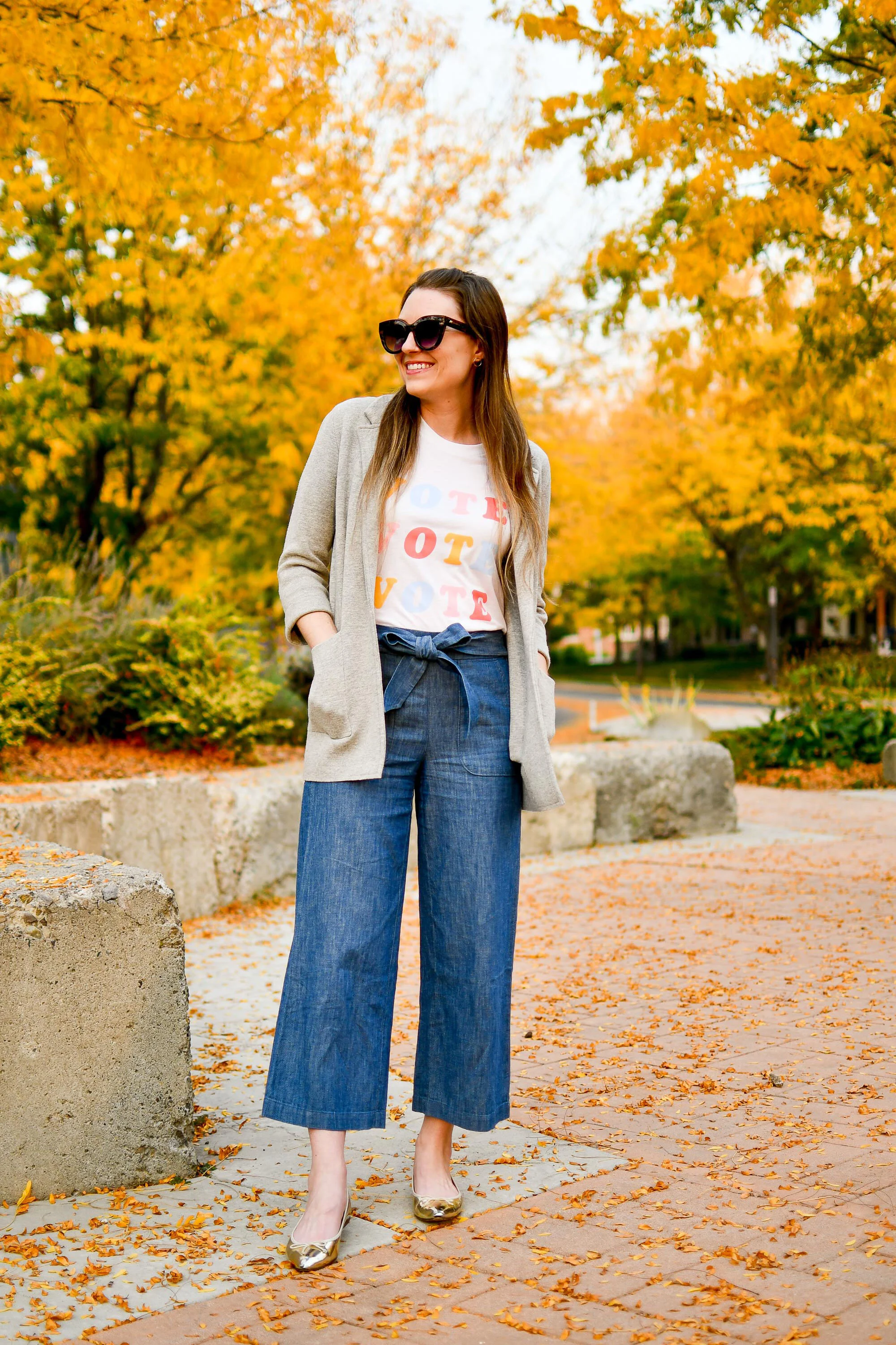 Chambray blazer womens outfit shop