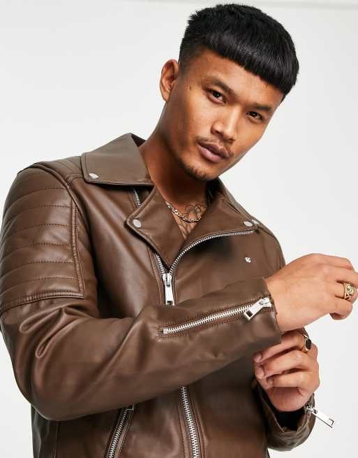 Chaqueta biker marron shop
