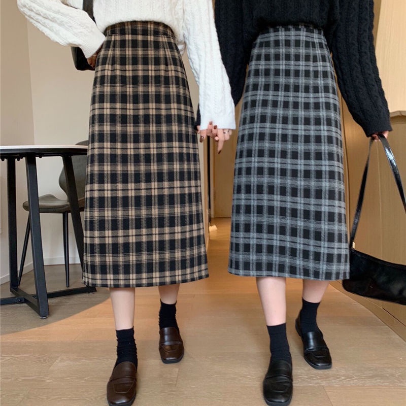 Product Name: Checkered long skirt outfit shop