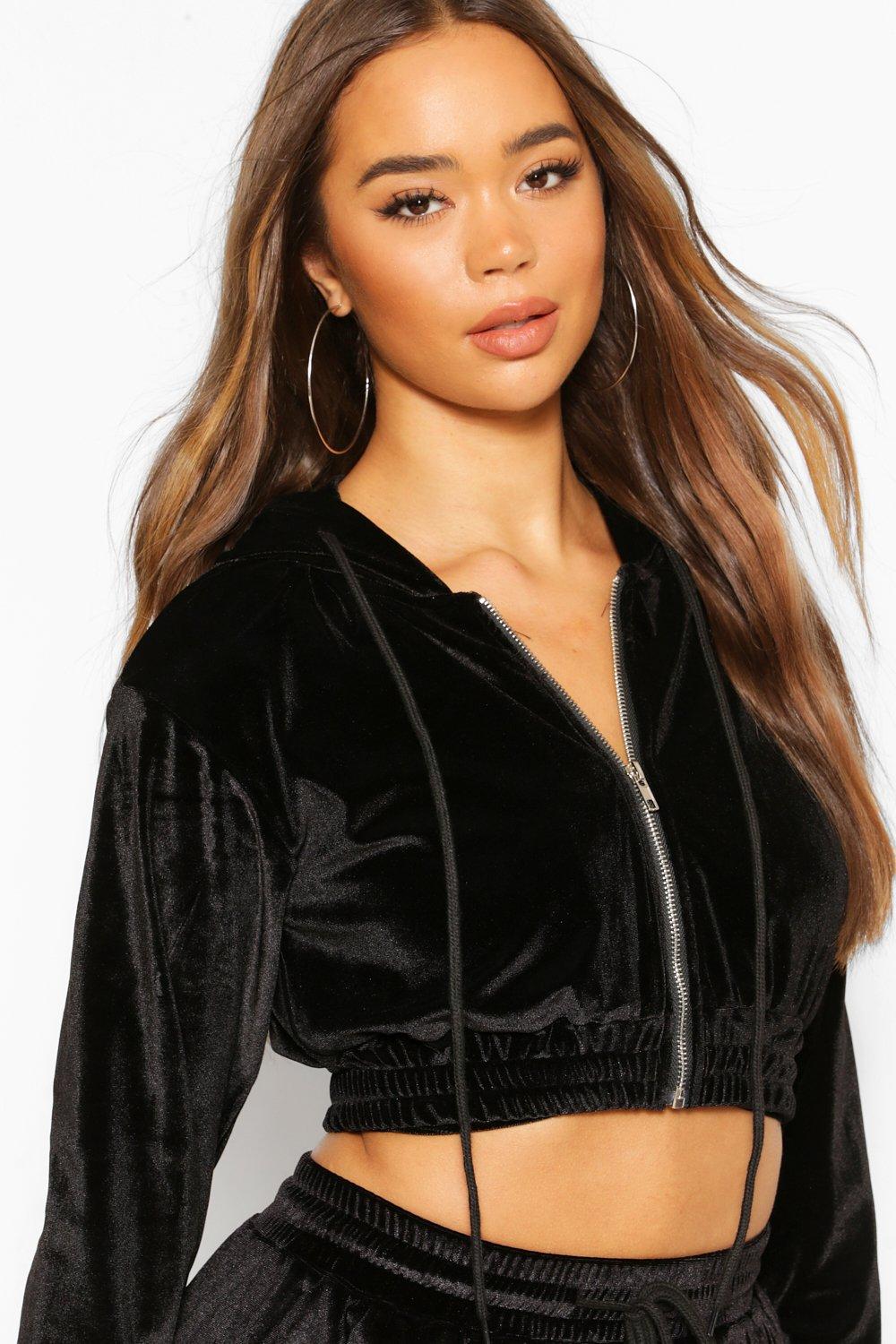 Cropped velour jacket shop