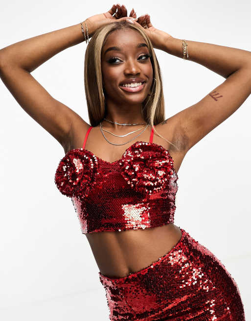 Deep red pleated skirt with sequin embellishments shop