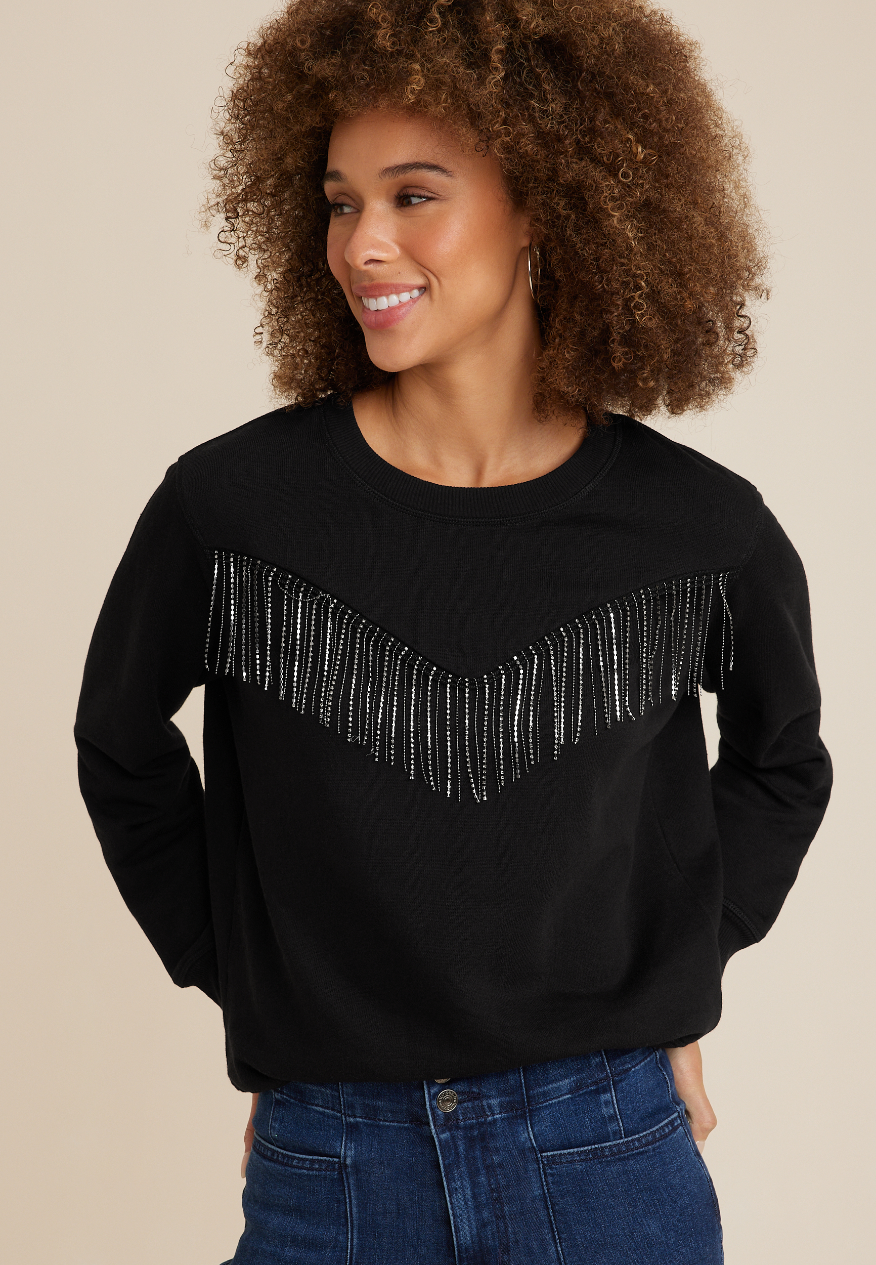Fringe sleeve sweatshirt shop