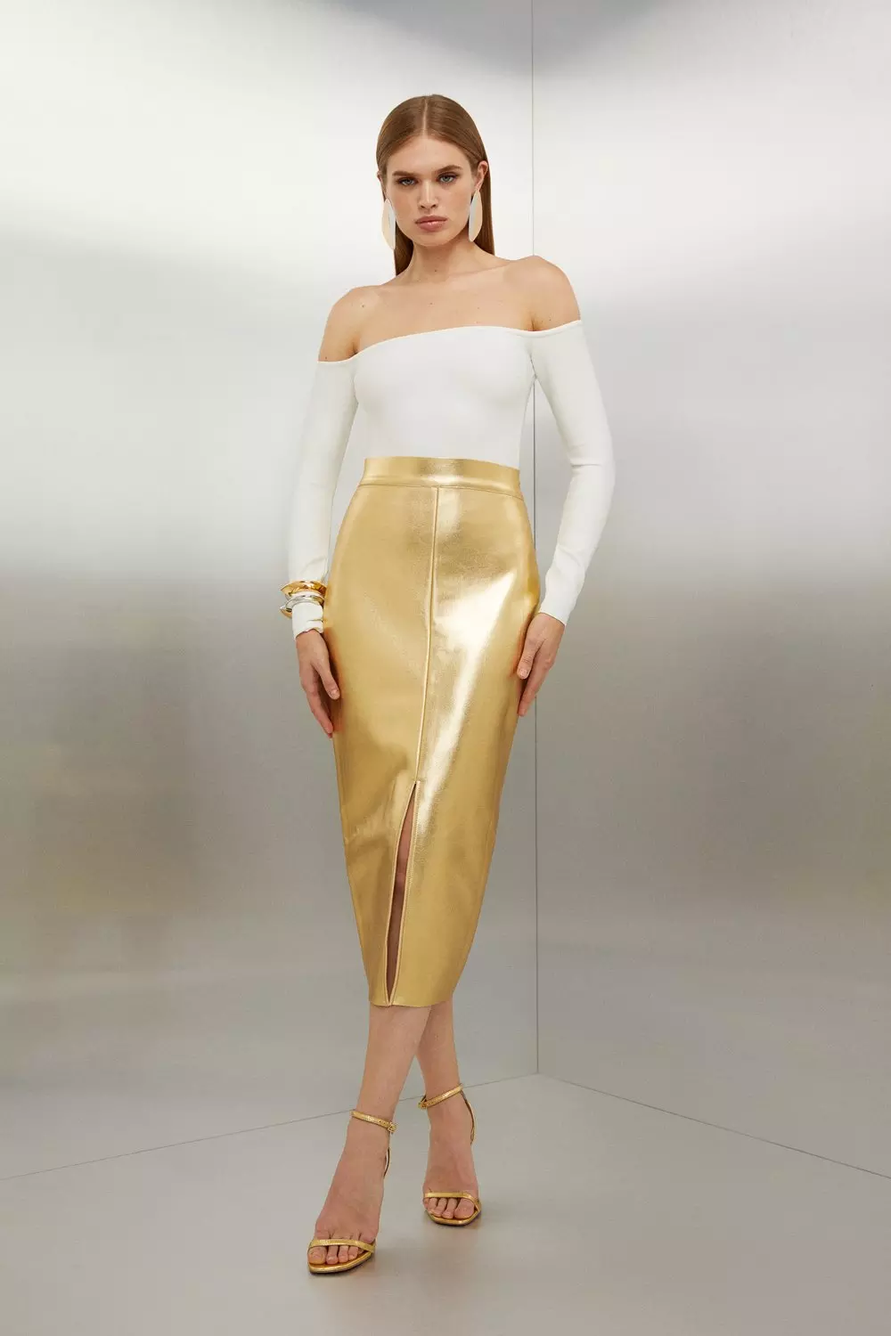Gold wrap midi skirt shop