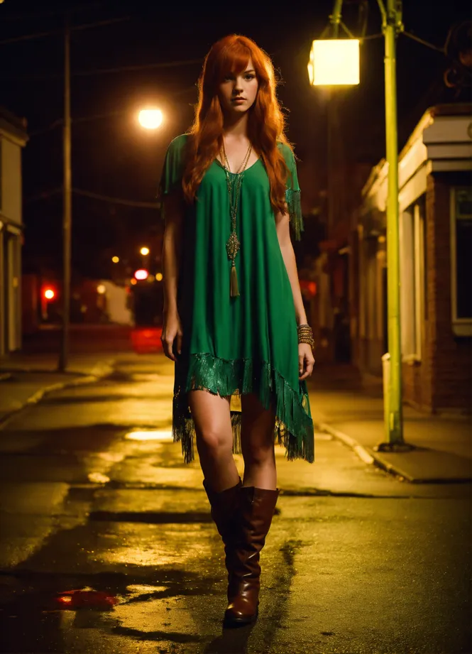 Green dress brown boots shop