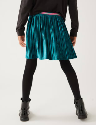 Green pleated velvet skirt shop