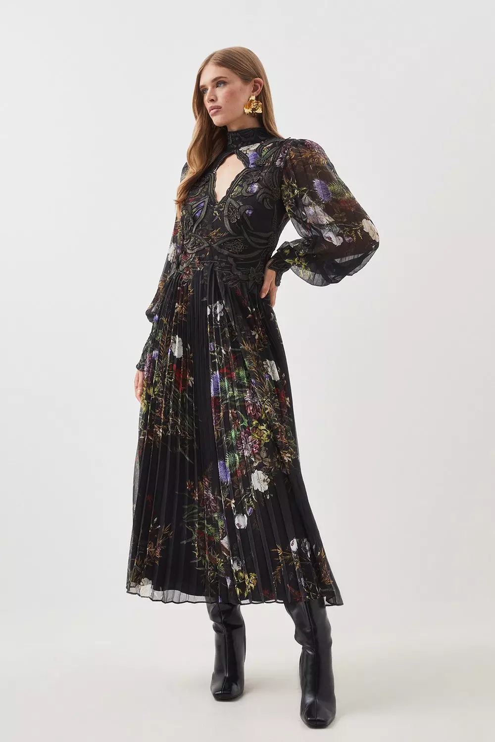Lace pleated maxi dress shop