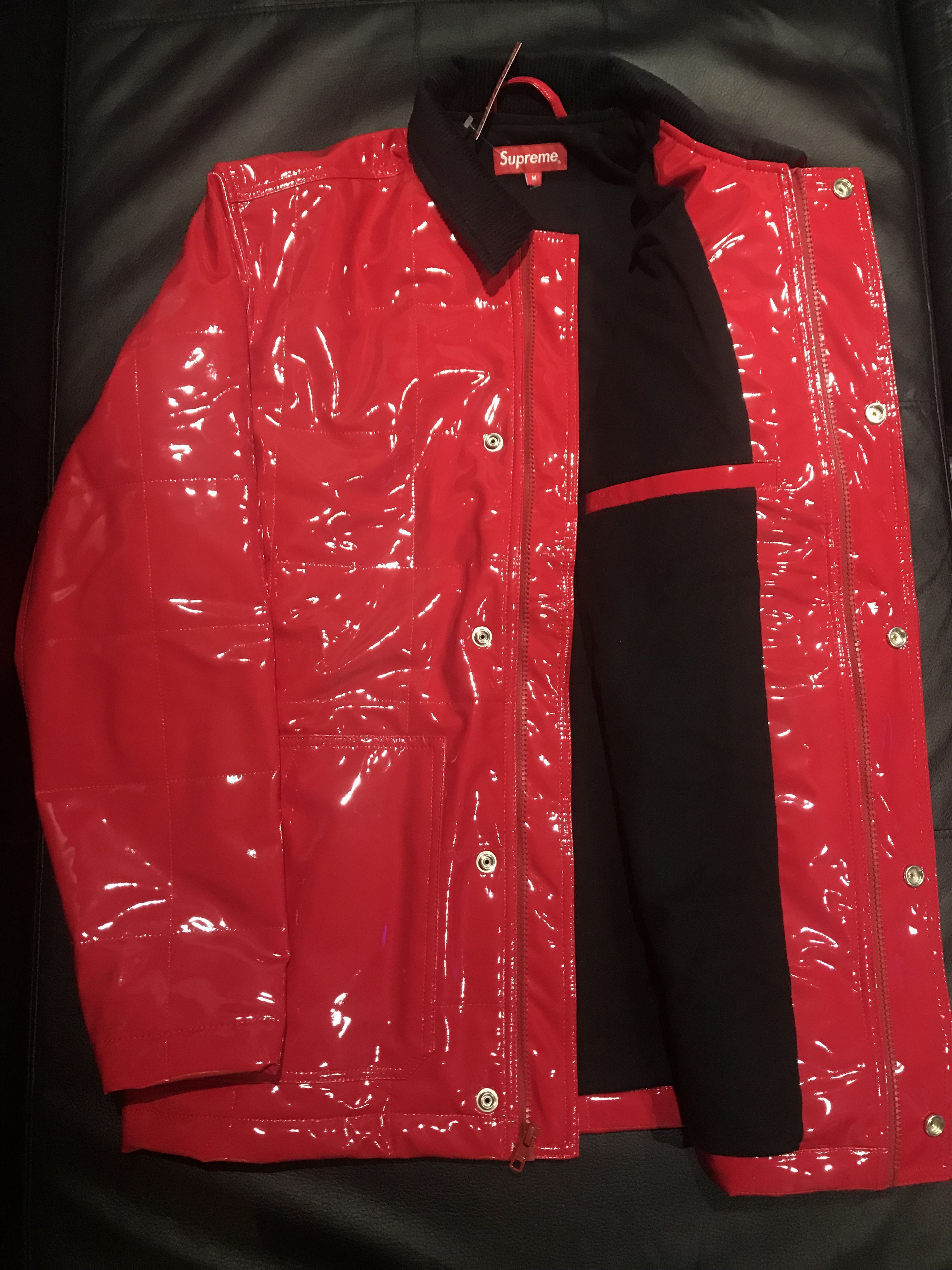 Supreme quilted patent vinyl work jacket shop