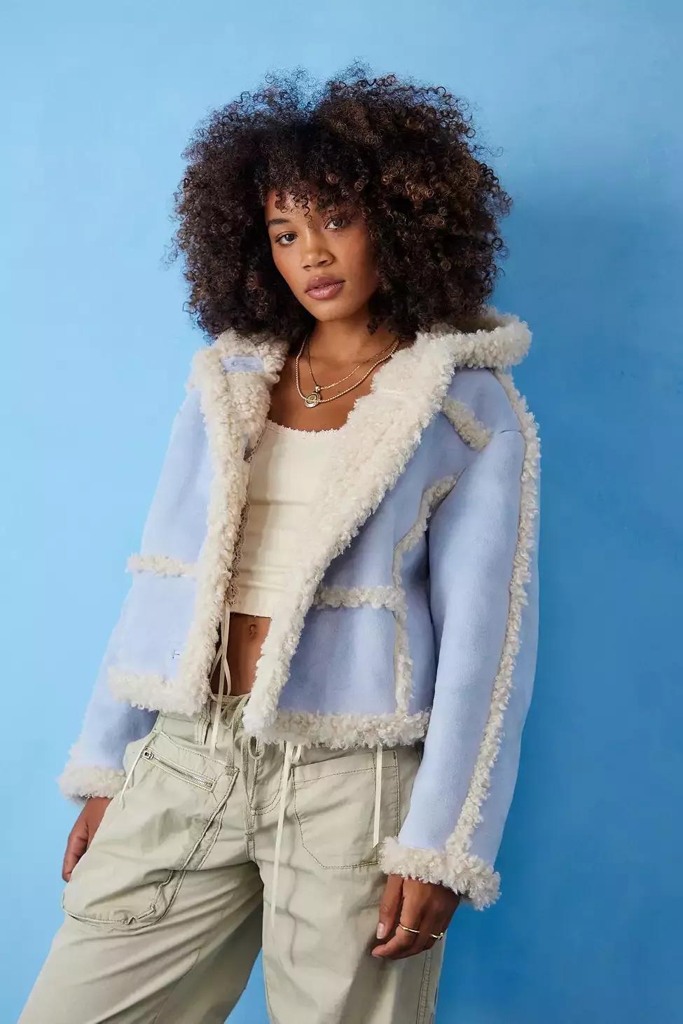 Urban outfitters blue fluffy jacket shop