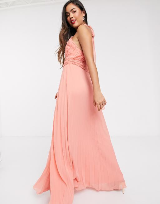 Asos design halter pleated waisted maxi dress shop