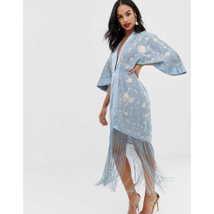 Asos design kimono midi dress with delicate beaded embellishment shop
