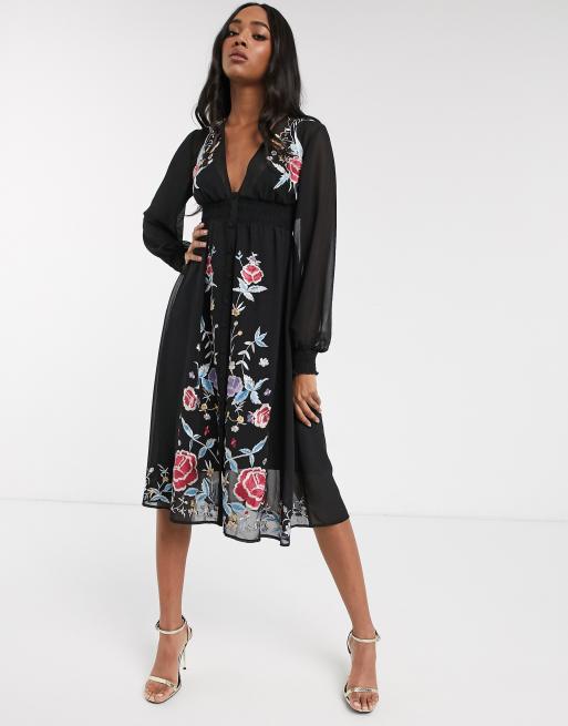 Asos design long sleeve embroidered midi dress shop