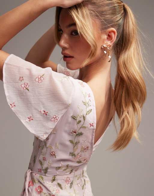 Asos edition embroidered flutter sleeve maxi wedding dress shop