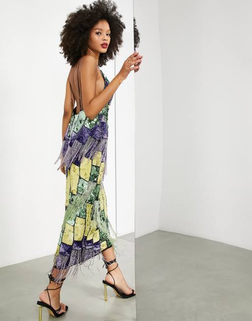 Asos edition starburst midi dress with fringe shop