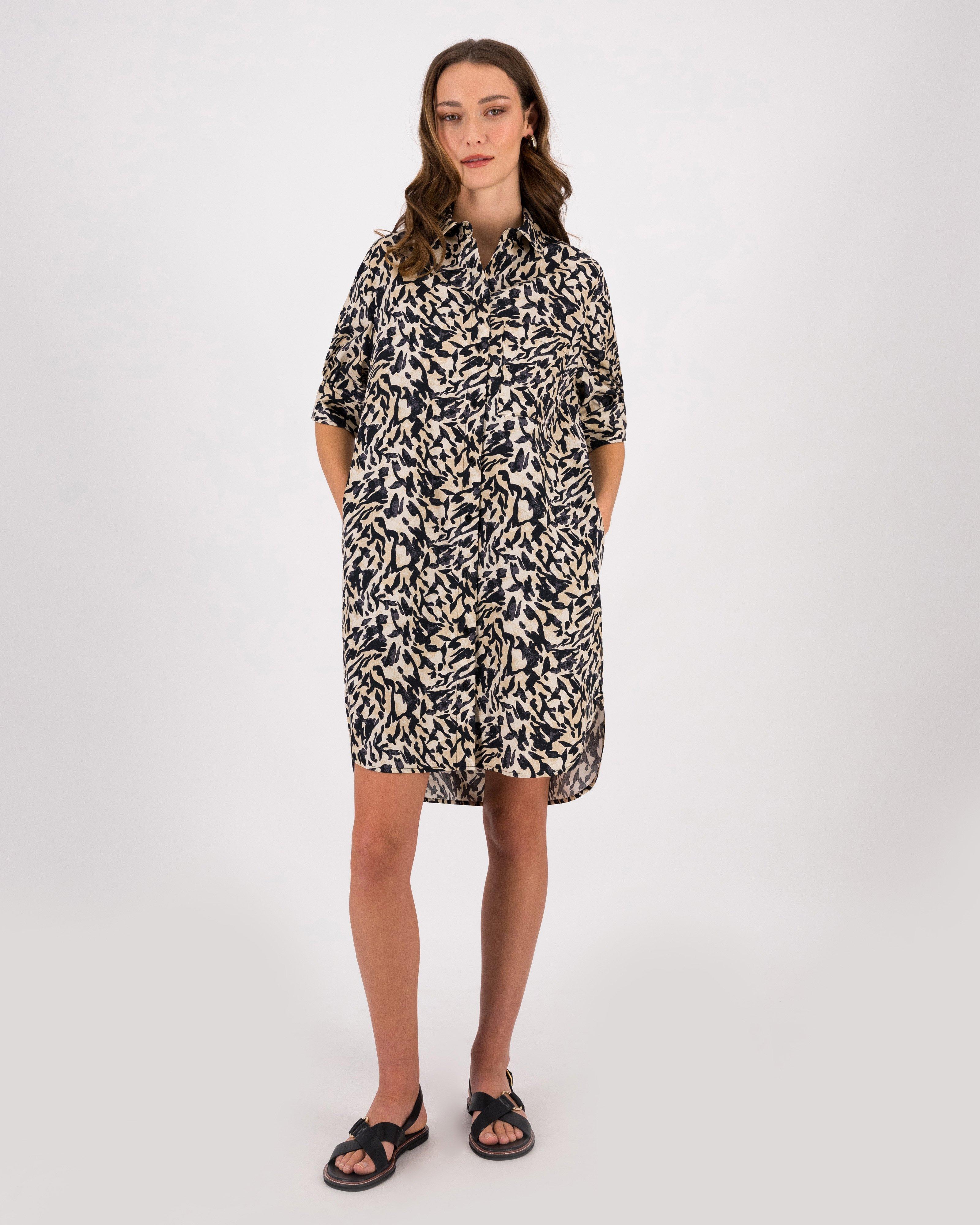 Black and white animal print shirt dress shop