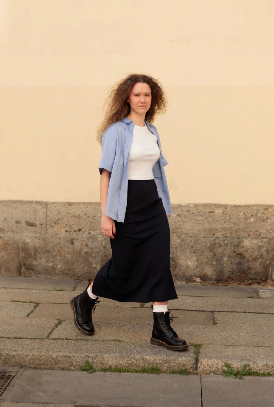 Black cami top flare skirt shop