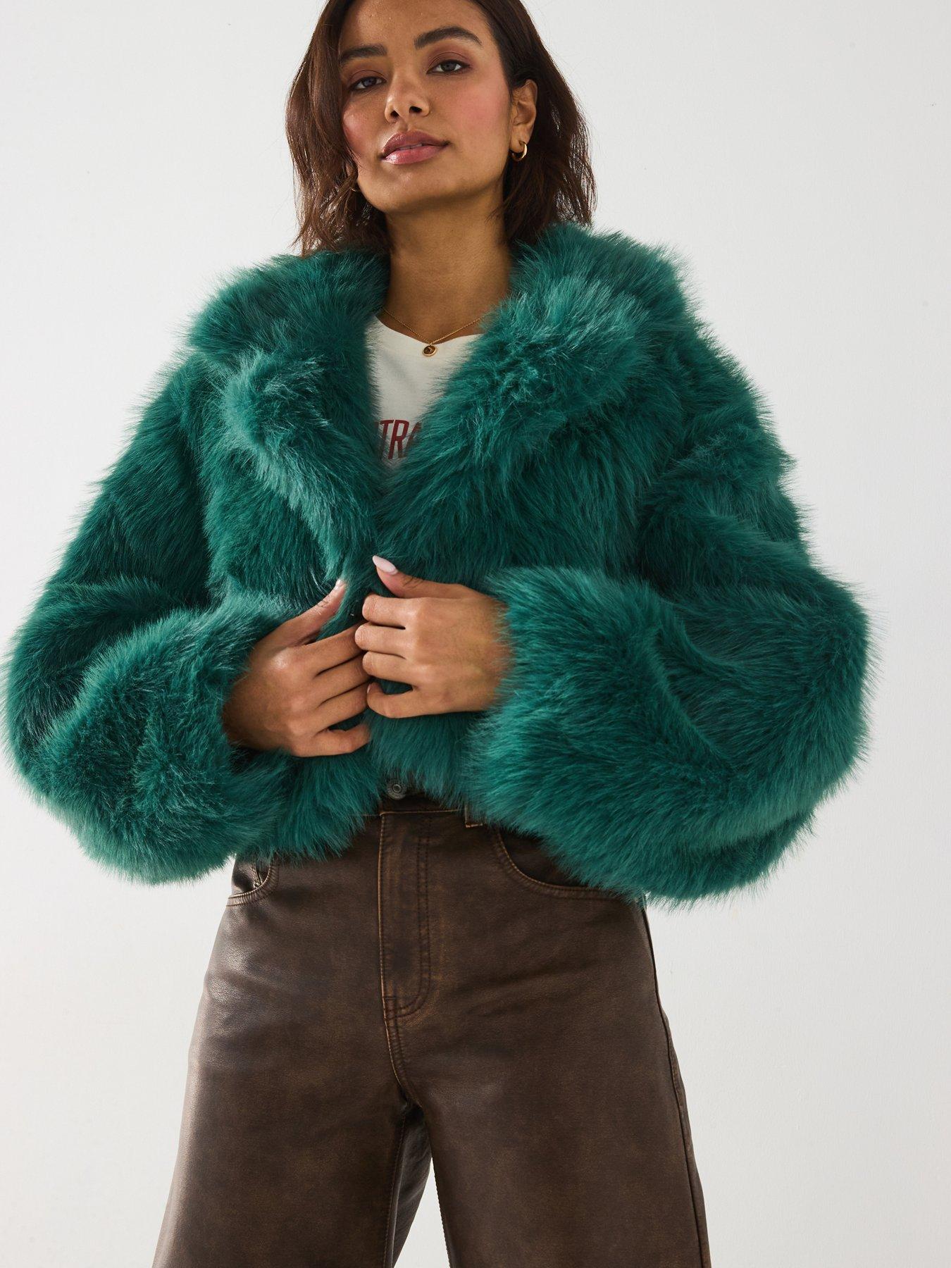 Green fur coat new look shop
