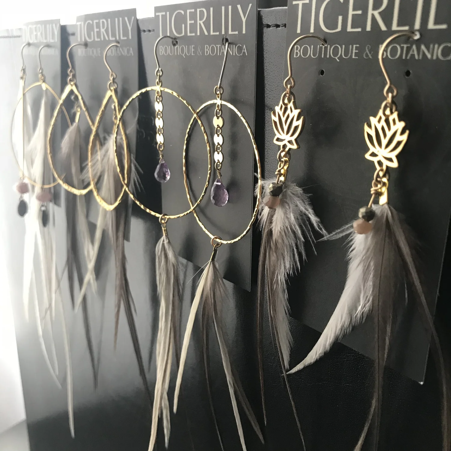 Leather feather earrings wholesale shop