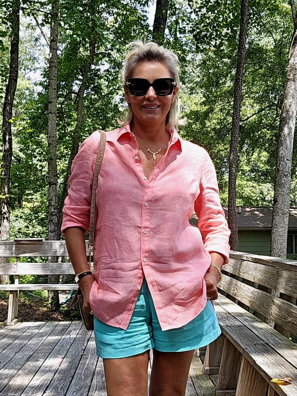 Pink shirt blue shorts shop