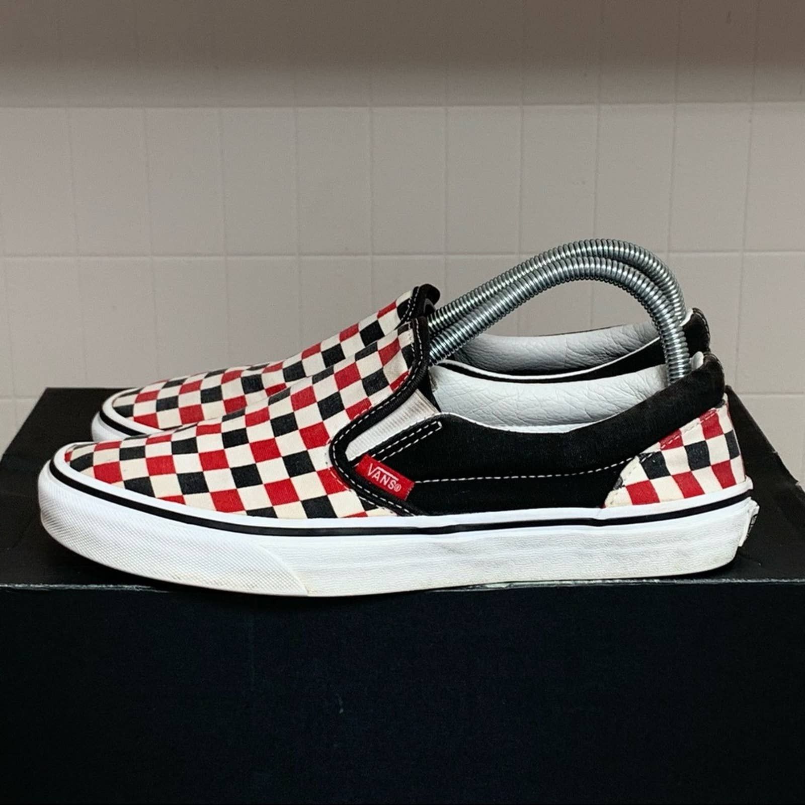 Red checkered slip on shop