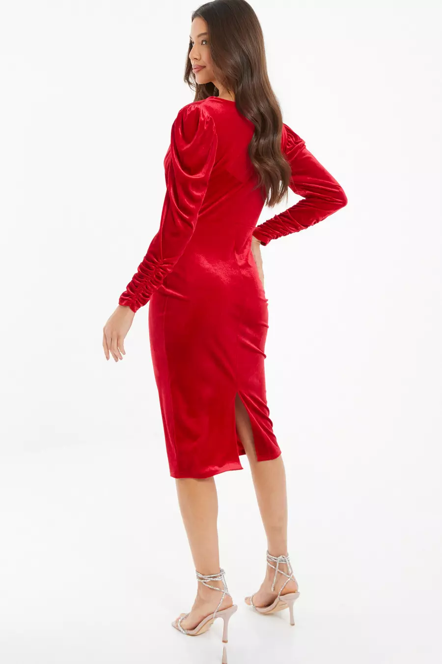 Red velvet midi dress shop