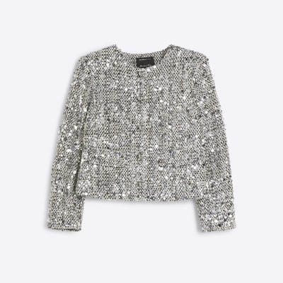 River island silver sequin blazer shop
