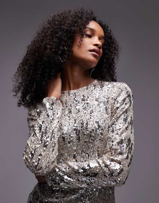 Silver sequin mini dress long sleeve shop