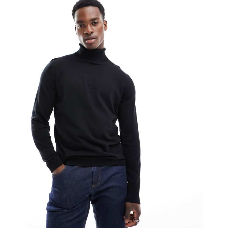 Black cotton roll neck jumper shop