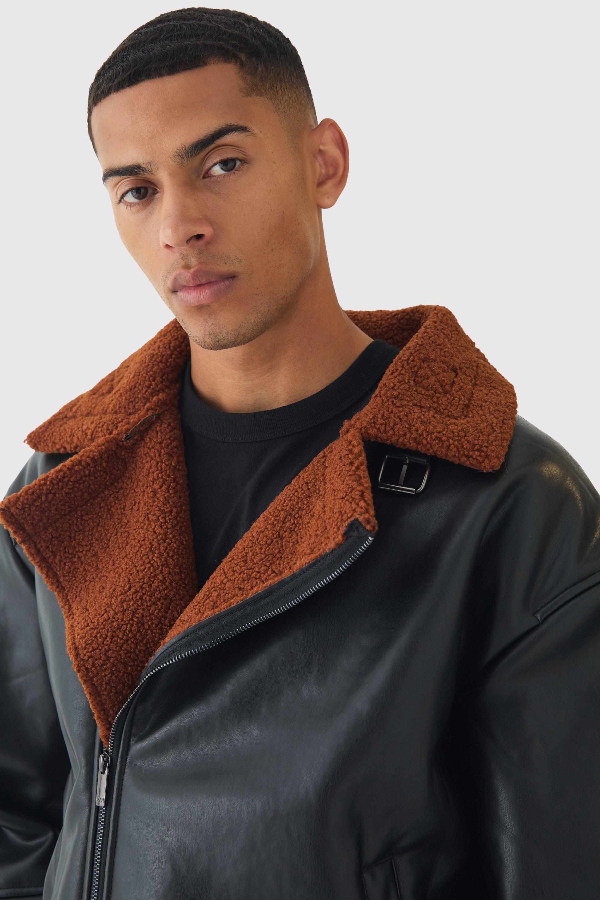 Black pu aviator jacket shop