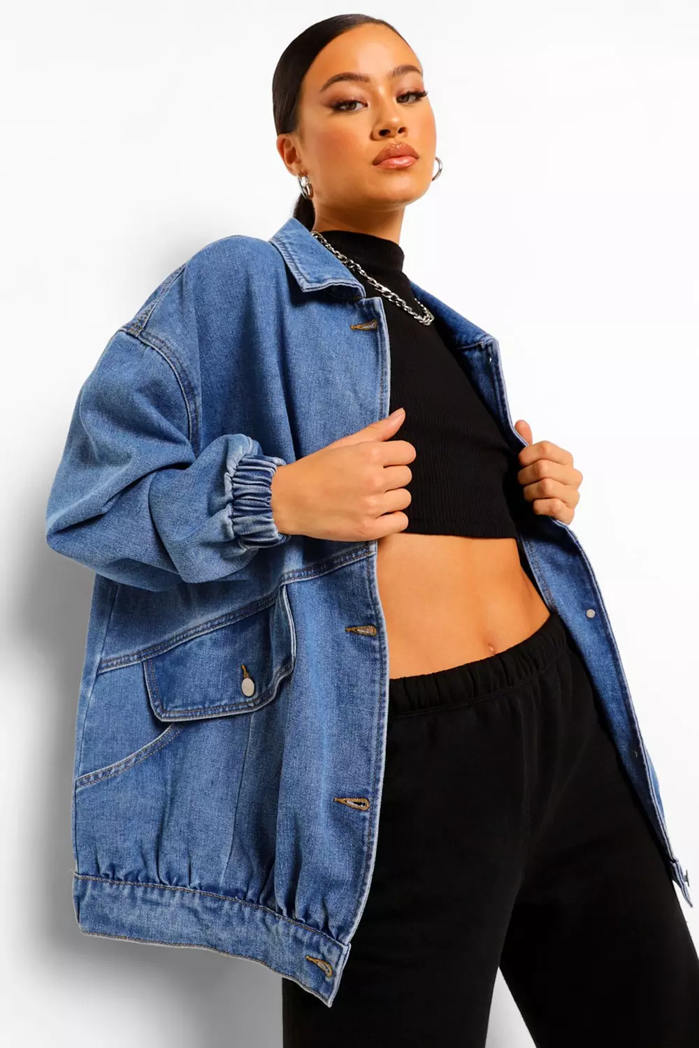Boohoo longline denim jacket shop