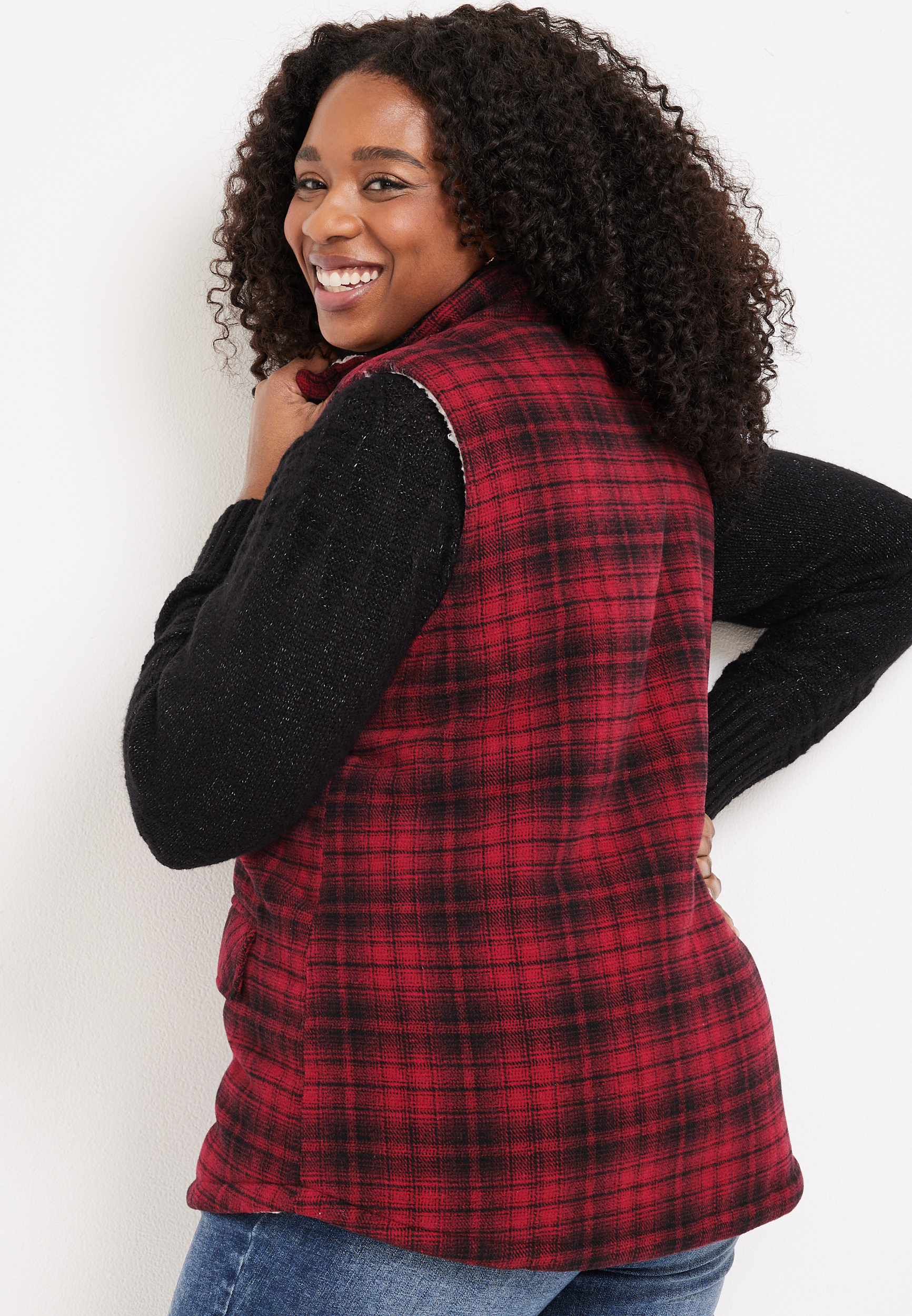 Buffalo plaid vest plus size shop